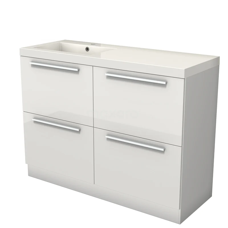 Modulo Bathroom furniture with sink | 120 cm High-gloss white Flat front Mineral marble 4 standing high drawers