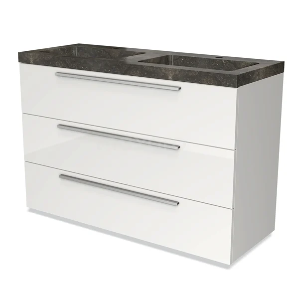 Modulo Bathroom furniture with sink | 120 cm High-gloss white Flat front Natural stone 3 drawers