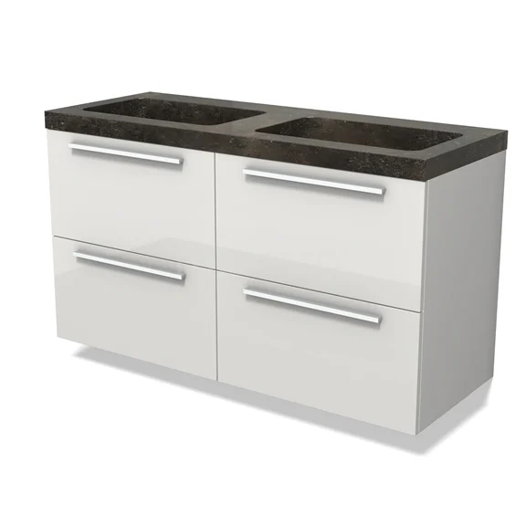 Modulo Bathroom furniture with sink | 120 cm High-gloss white Flat front Natural stone 4 drawers
