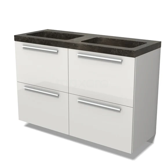 Modulo Bathroom furniture with sink | 120 cm High-gloss white Flat front Natural stone 4 high drawers