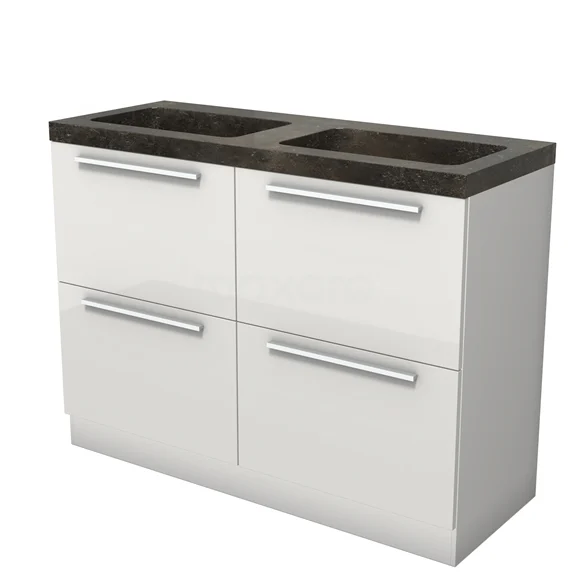 Modulo Bathroom furniture with sink | 120 cm High-gloss white Flat front Natural stone 4 standing high drawers