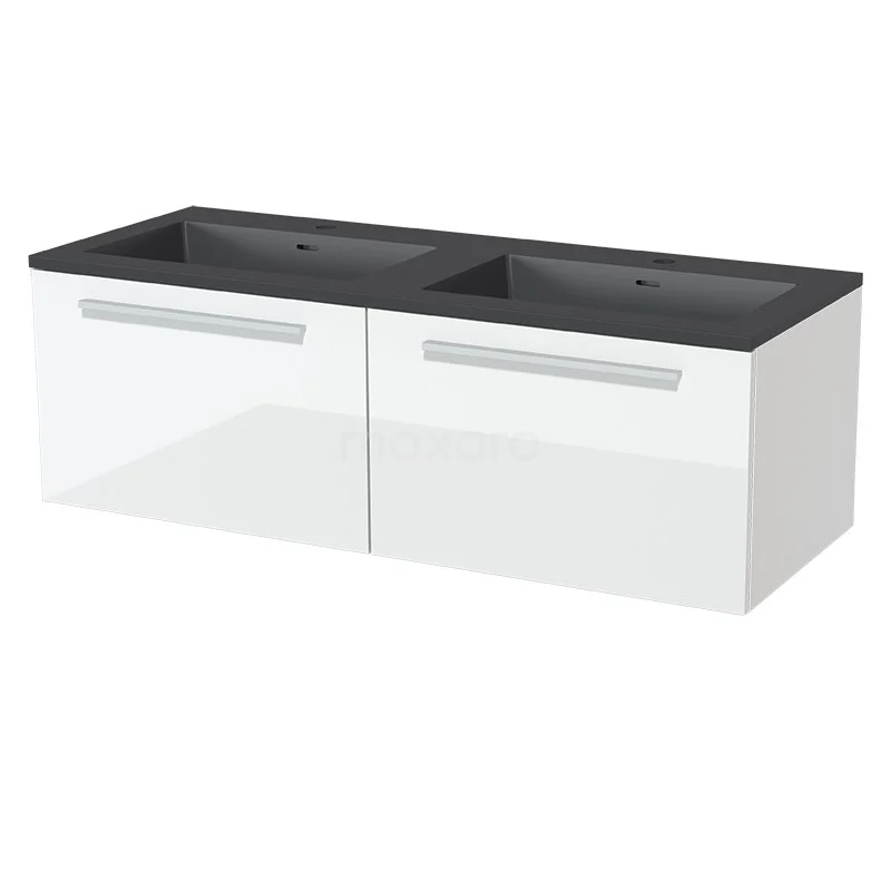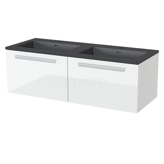 Modulo Bathroom furniture with sink | 120 cm High-gloss white Flat front Quartz 2 Side-by-side drawers