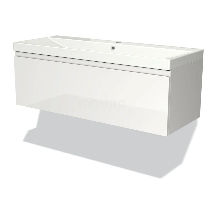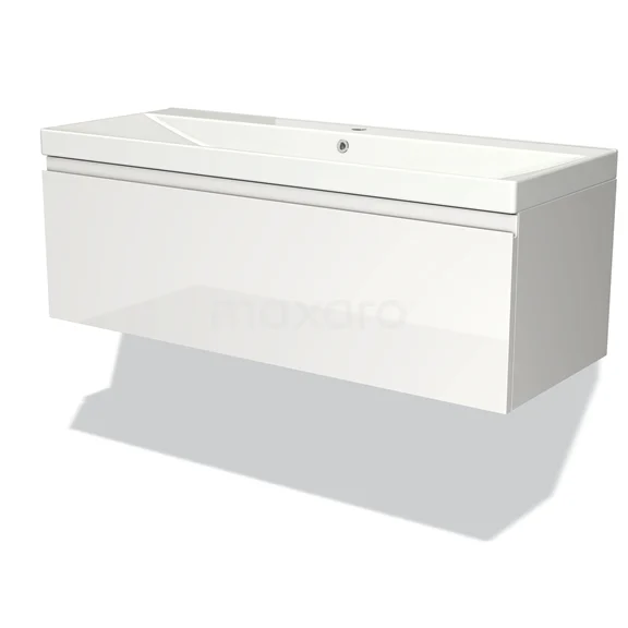 Modulo Bathroom furniture with sink | 120 cm High-gloss white Handle-less front Ceramic 1 drawer