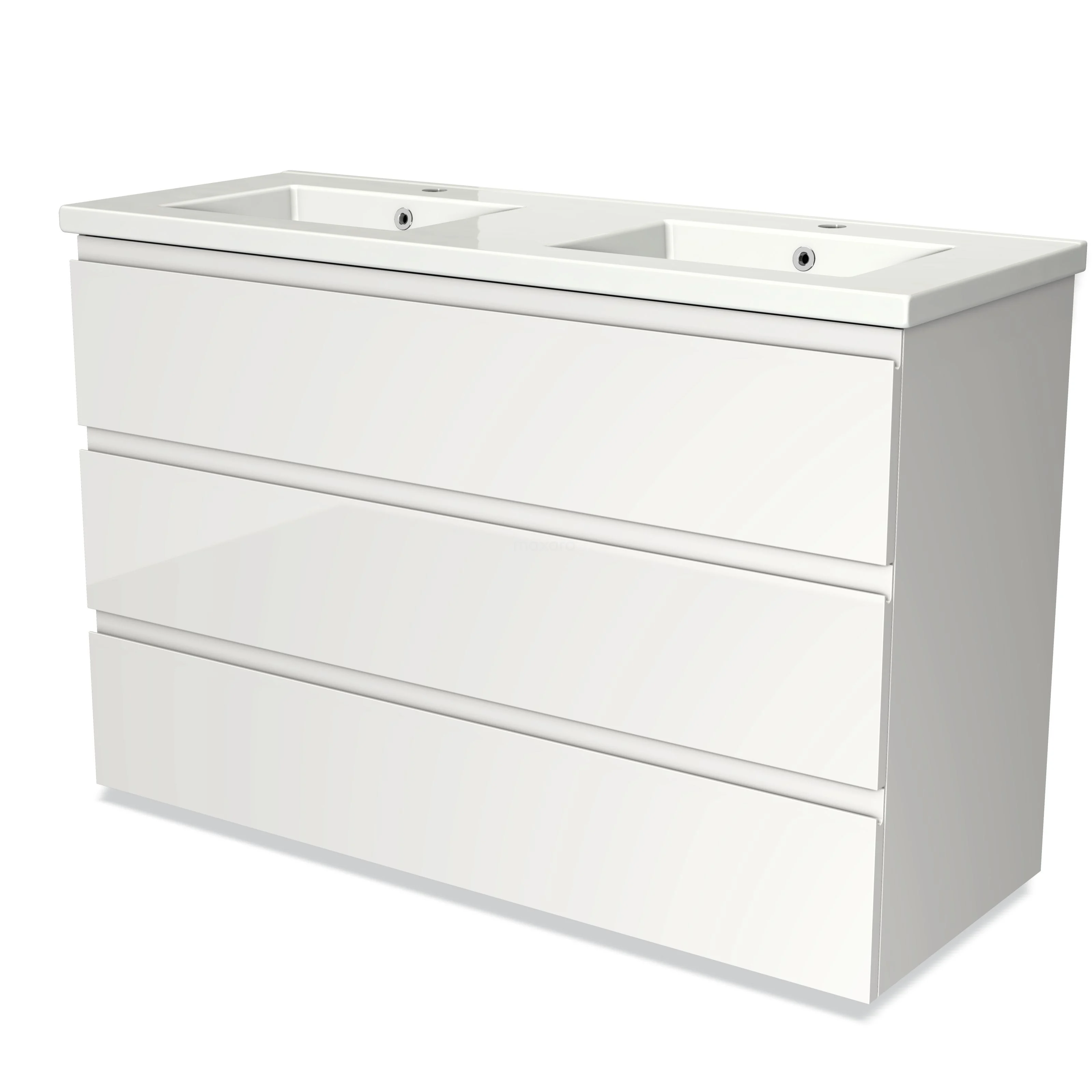 Modulo Bathroom furniture with sink | 120 cm High-gloss white Handle-less front Ceramic 3 drawers