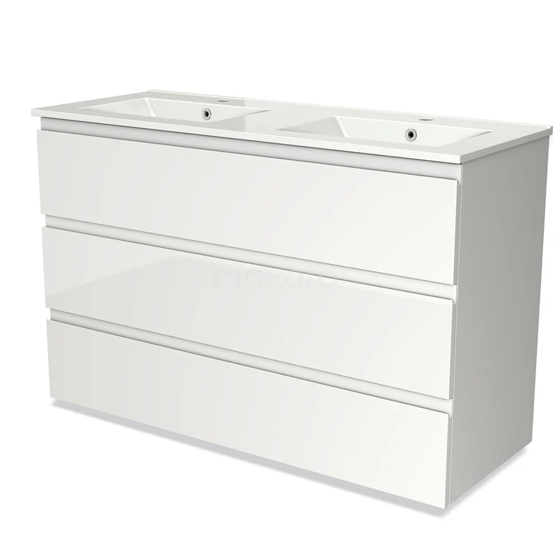 Modulo Bathroom furniture with sink | 120 cm High-gloss white Handle-less front Ceramic 3 drawers