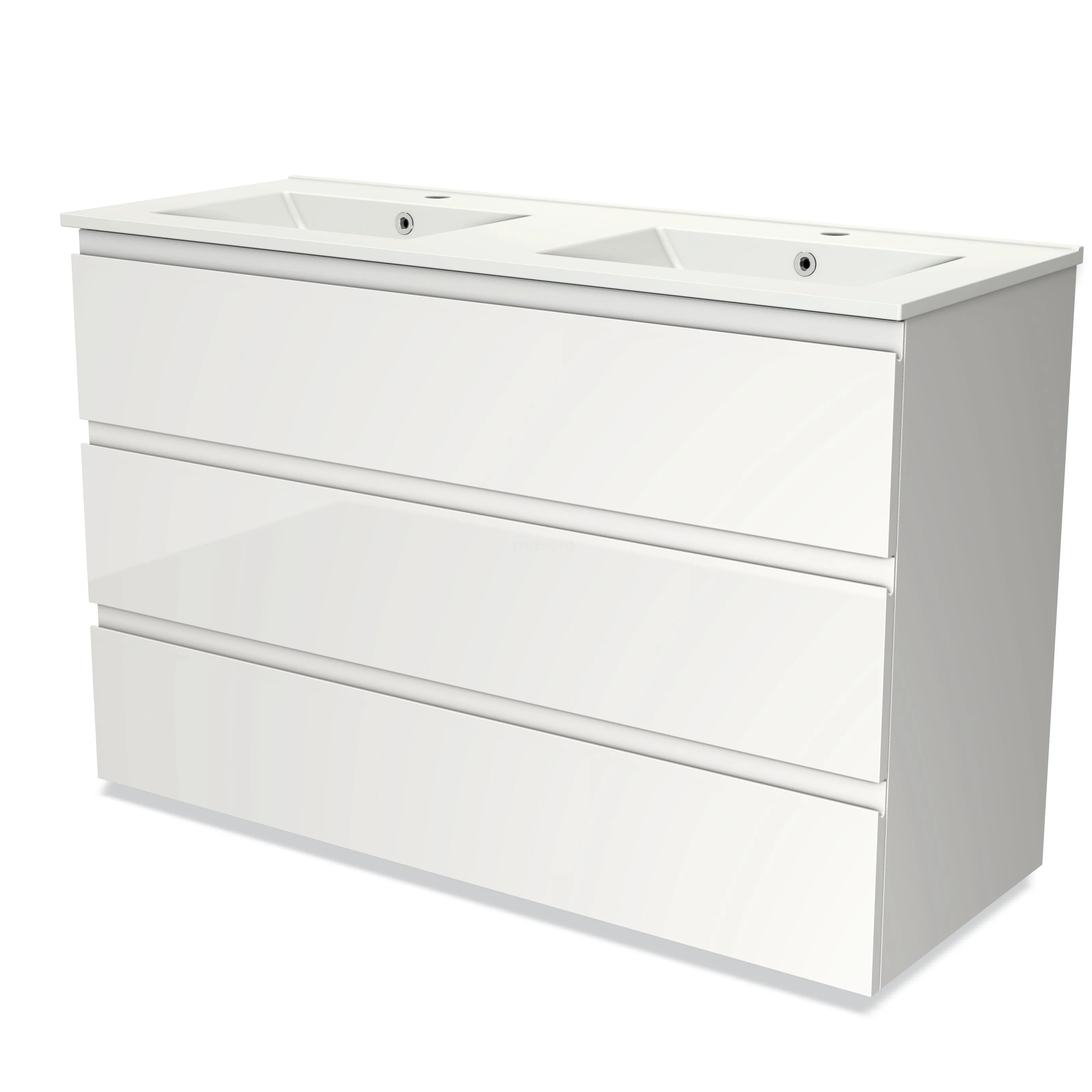 Modulo Bathroom furniture with sink | 120 cm High-gloss white Handle-less front Ceramic 3 drawers