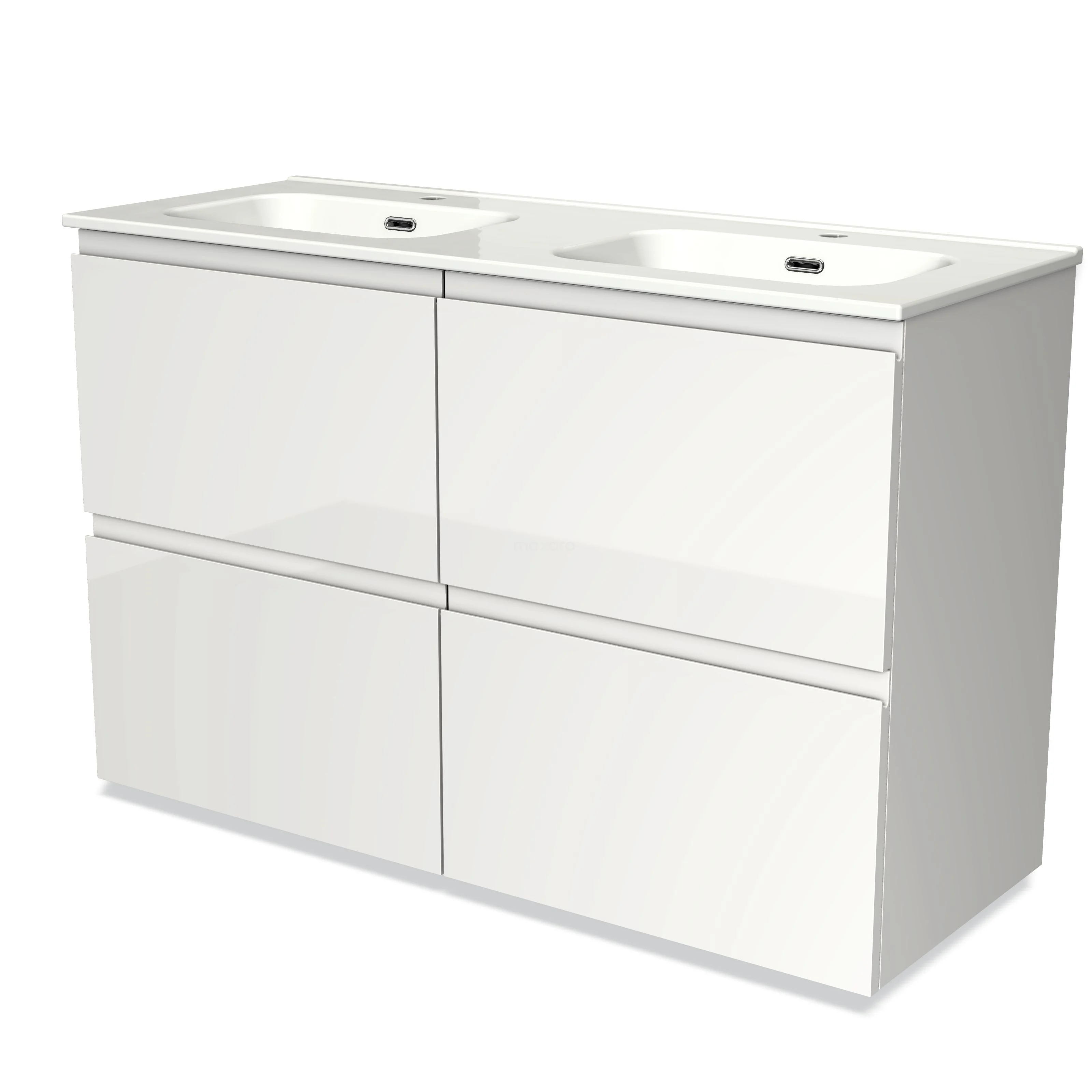 Modulo Bathroom furniture with sink | 120 cm High-gloss white Handle-less front Ceramic 4 high drawers