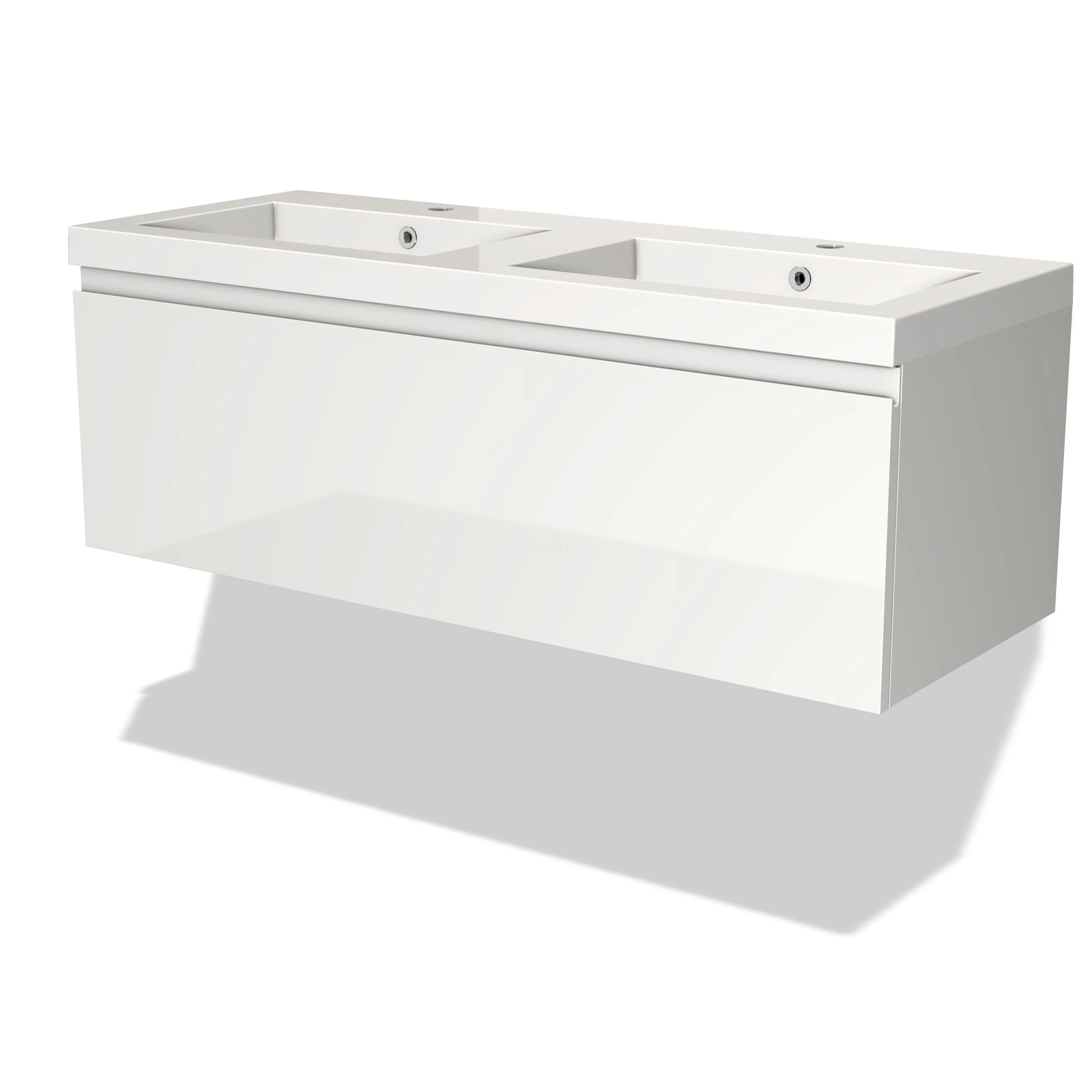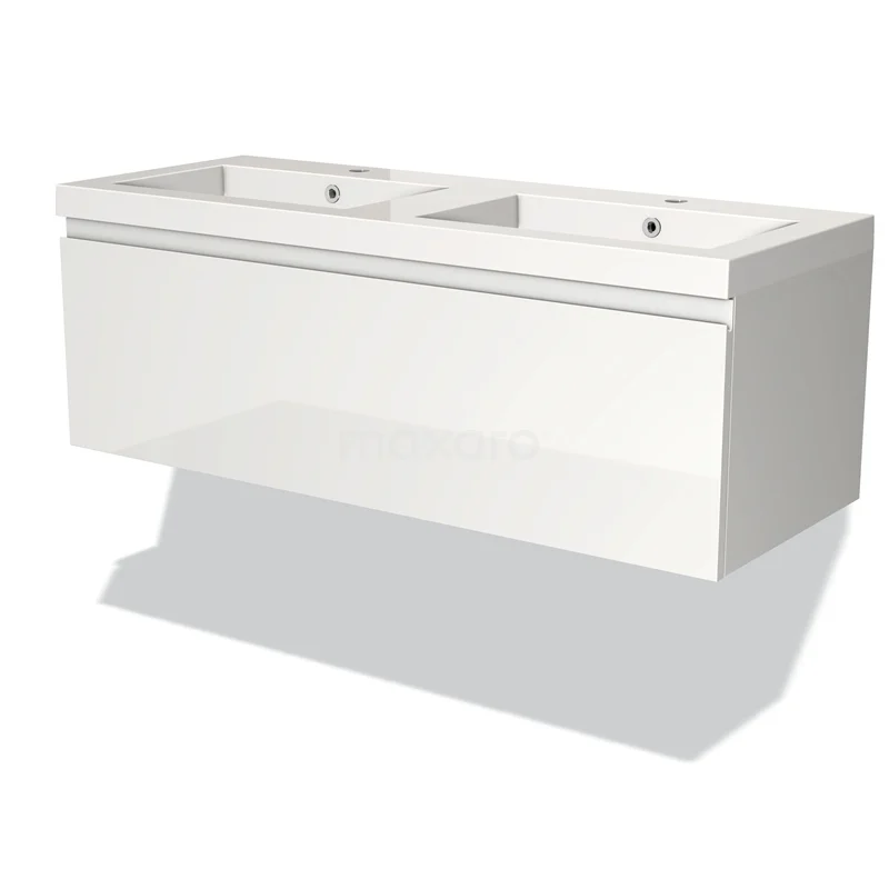 Modulo Bathroom furniture with sink | 120 cm High-gloss white Handle-less front Mineral marble 1 drawer