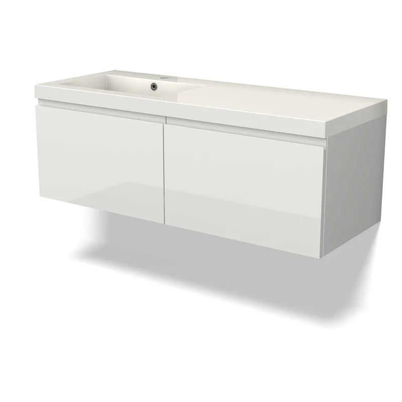 Modulo Bathroom furniture with sink | 120 cm High-gloss white Handle-less front Mineral marble 2 Side-by-side drawers