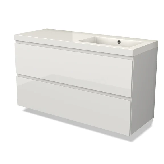 Modulo Bathroom furniture with sink | 120 cm High-gloss white Handle-less front Mineral marble 2 Stacked drawers