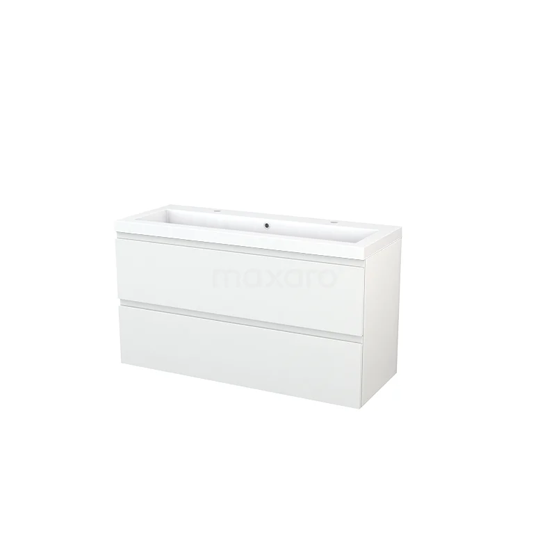 Modulo+ Bathroom furniture with sink | 120 cm High-gloss white Handle-less front Mineral marble 2 Stacked drawers