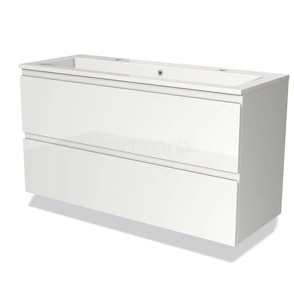Modulo Bathroom furniture with sink | 120 cm High-gloss white Handle-less front Mineral marble 2 Stacked drawers