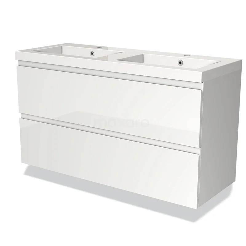 Modulo Bathroom furniture with sink | 120 cm High-gloss white Handle-less front Mineral marble 2 Stacked drawers