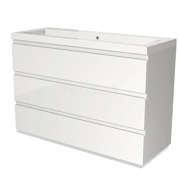 Modulo Bathroom furniture with sink | 120 cm High-gloss white Handle-less front Mineral marble 3 drawers