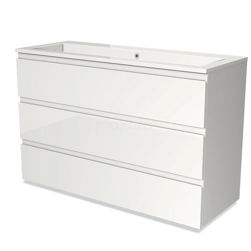 Modulo Bathroom furniture with sink | 120 cm High-gloss white Handle-less front Mineral marble 3 drawers