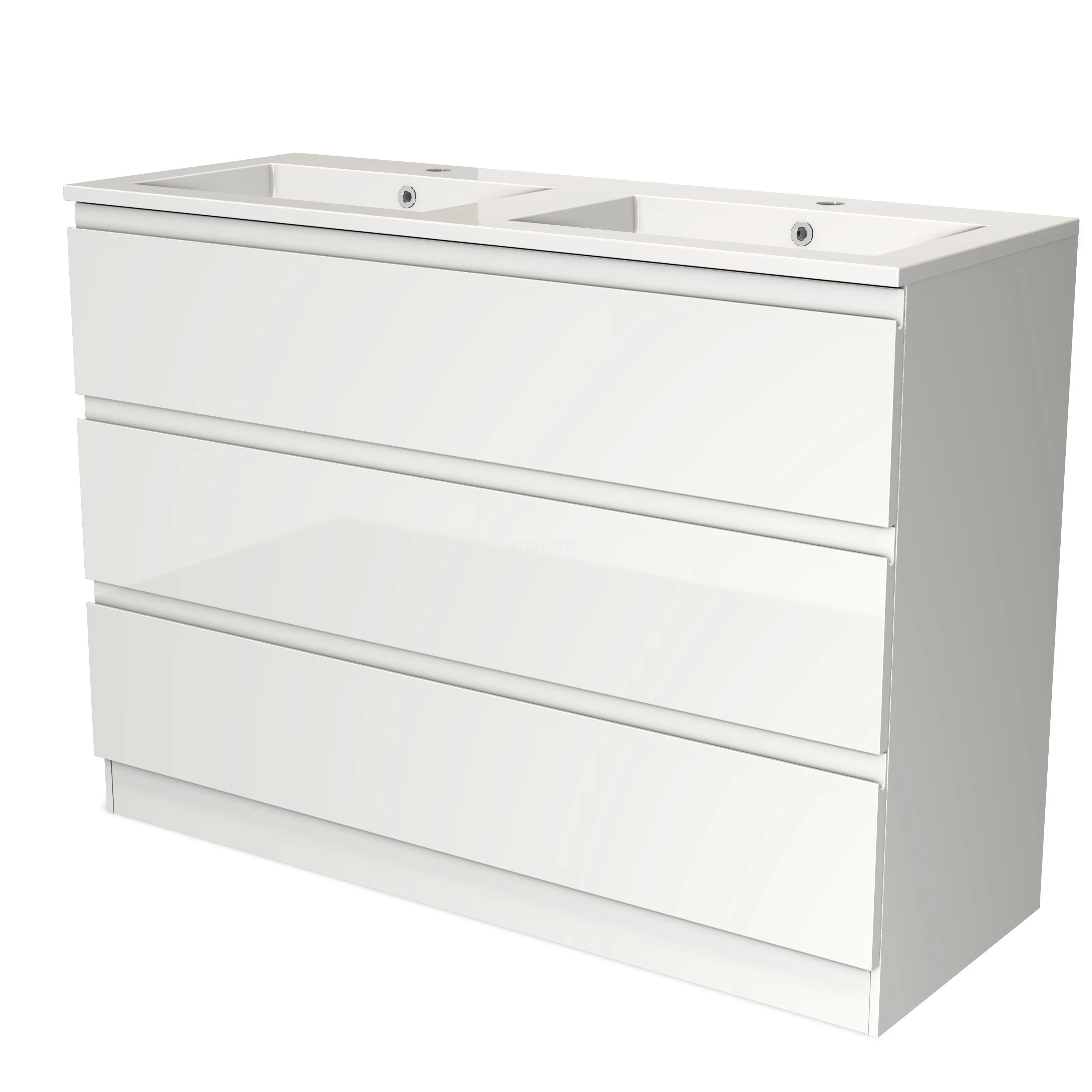 Modulo Bathroom furniture with sink | 120 cm High-gloss white Handle-less front Mineral marble 3 standing drawers