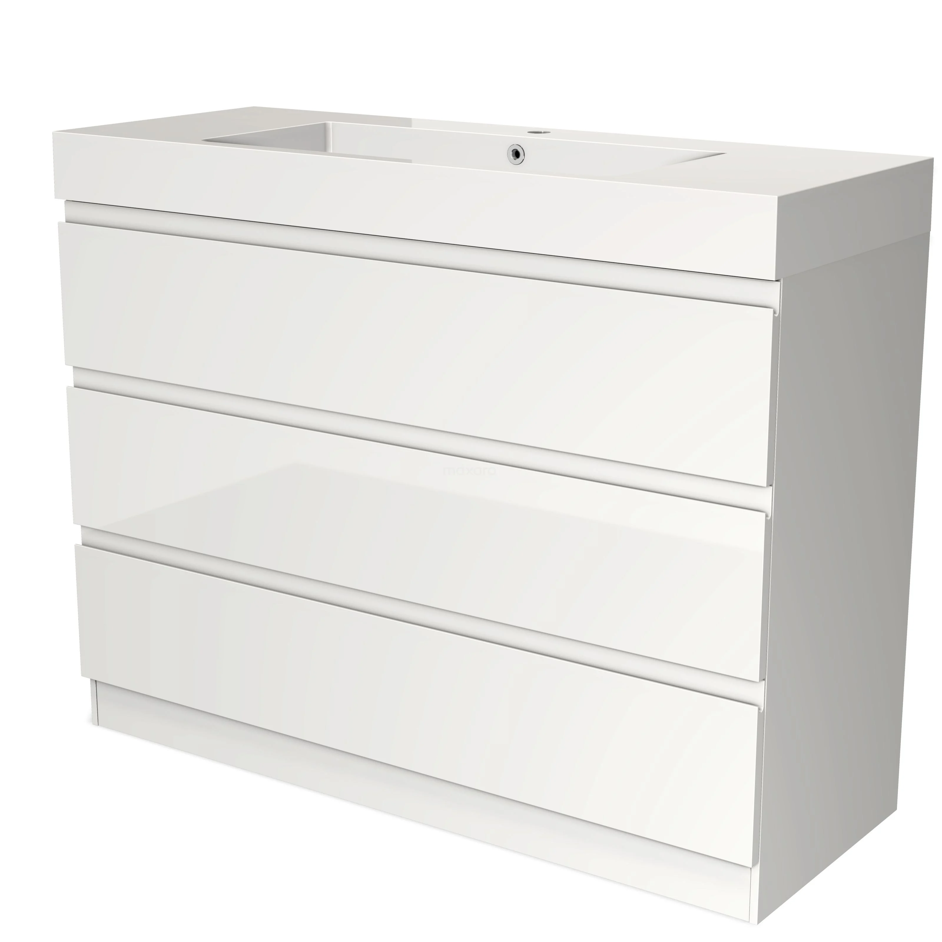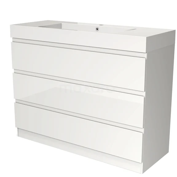 Modulo Bathroom furniture with sink | 120 cm High-gloss white Handle-less front Mineral marble 3 standing drawers