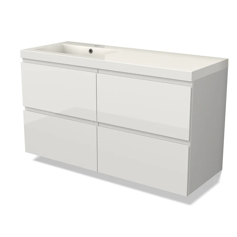 Modulo Bathroom furniture with sink | 120 cm High-gloss white Handle-less front Mineral marble 4 drawers