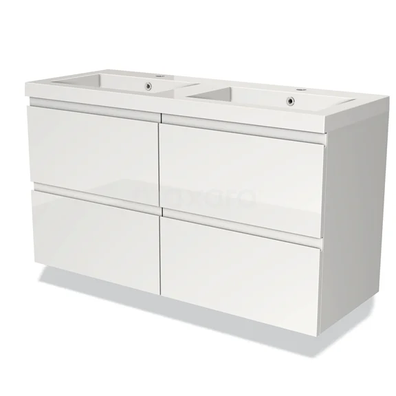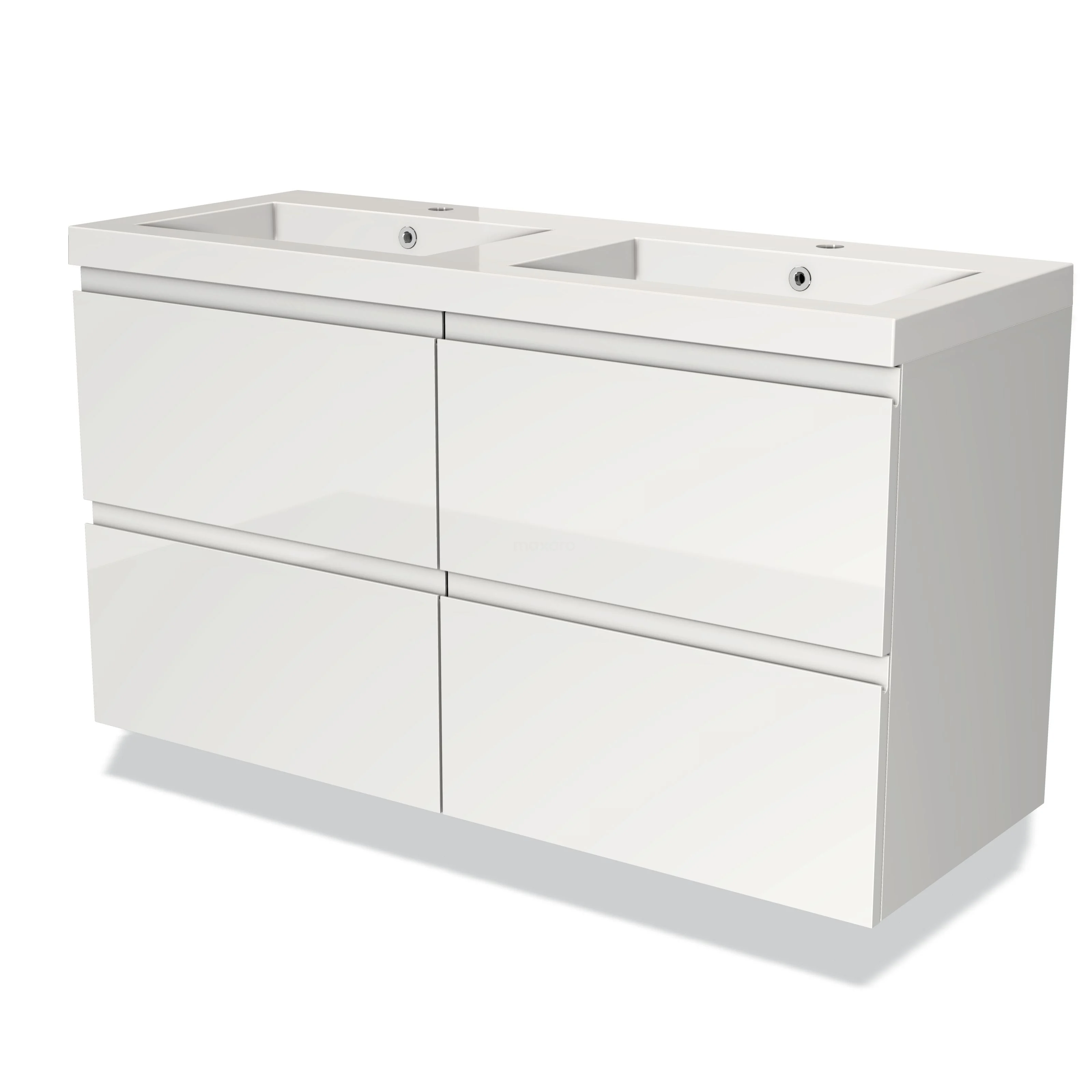Modulo Bathroom furniture with sink | 120 cm High-gloss white Handle-less front Mineral marble 4 drawers