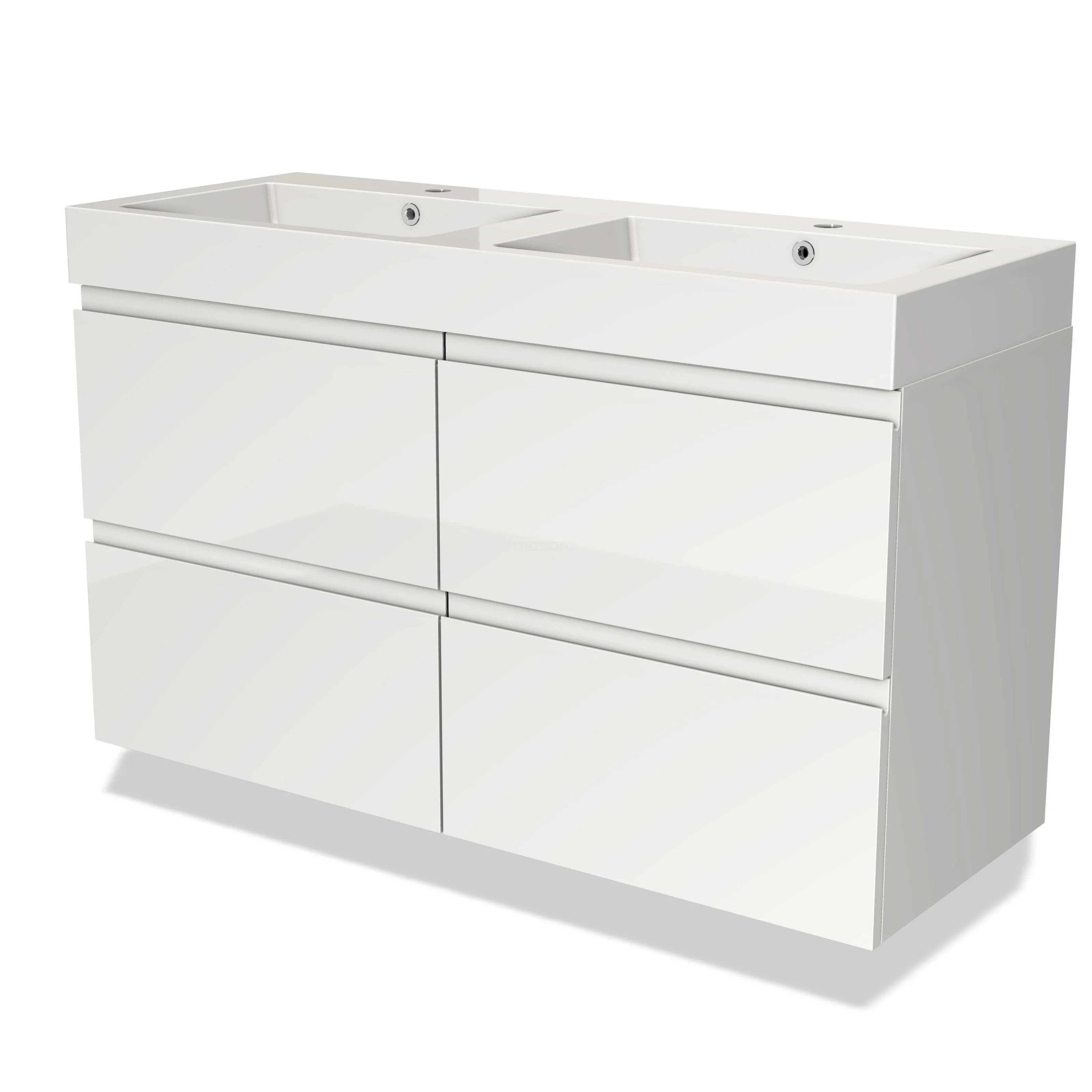 Modulo Bathroom furniture with sink | 120 cm High-gloss white Handle-less front Mineral marble 4 drawers