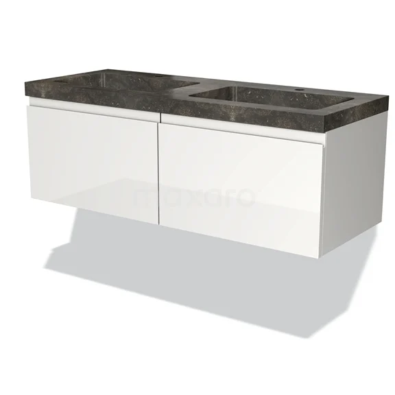 Modulo Bathroom furniture with sink | 120 cm High-gloss white Handle-less front Natural stone 2 Side-by-side drawers