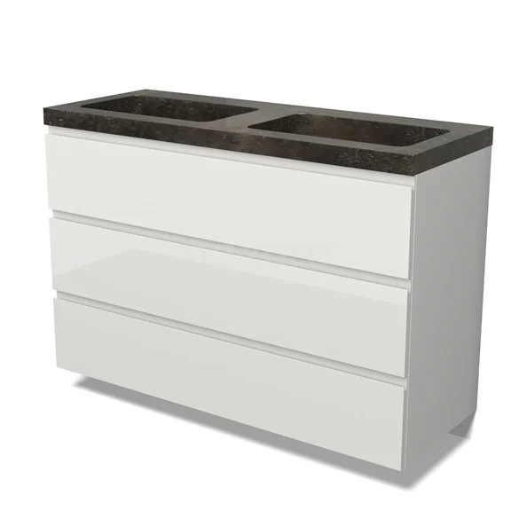Modulo Bathroom furniture with sink | 120 cm High-gloss white Handle-less front Natural stone 3 drawers