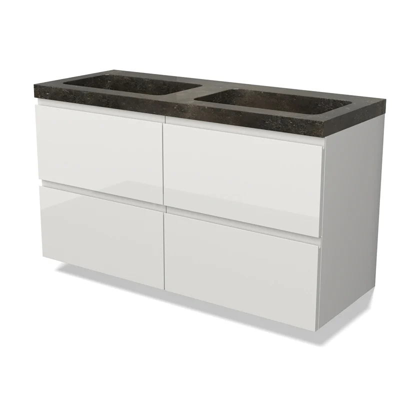 Modulo Bathroom furniture with sink | 120 cm High-gloss white Handle-less front Natural stone 4 drawers