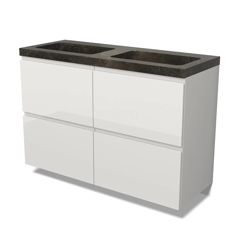 Modulo Bathroom furniture with sink | 120 cm High-gloss white Handle-less front Natural stone 4 high drawers