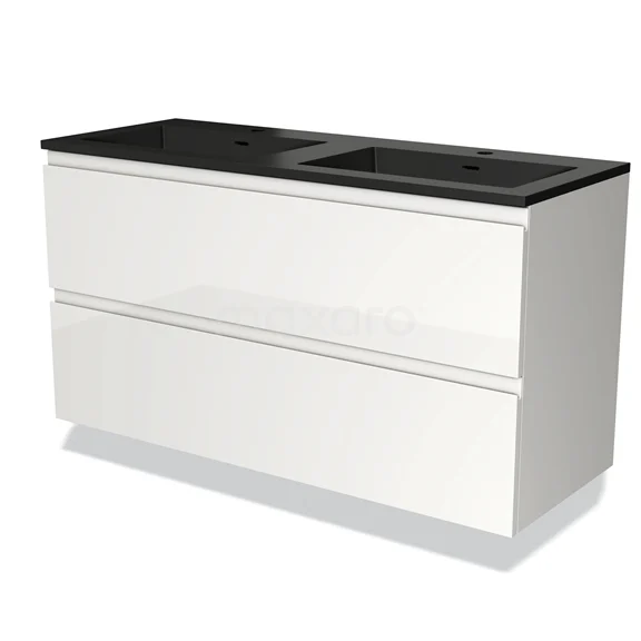 Modulo Bathroom furniture with sink | 120 cm High-gloss white Handle-less front Quartz 2 Stacked drawers