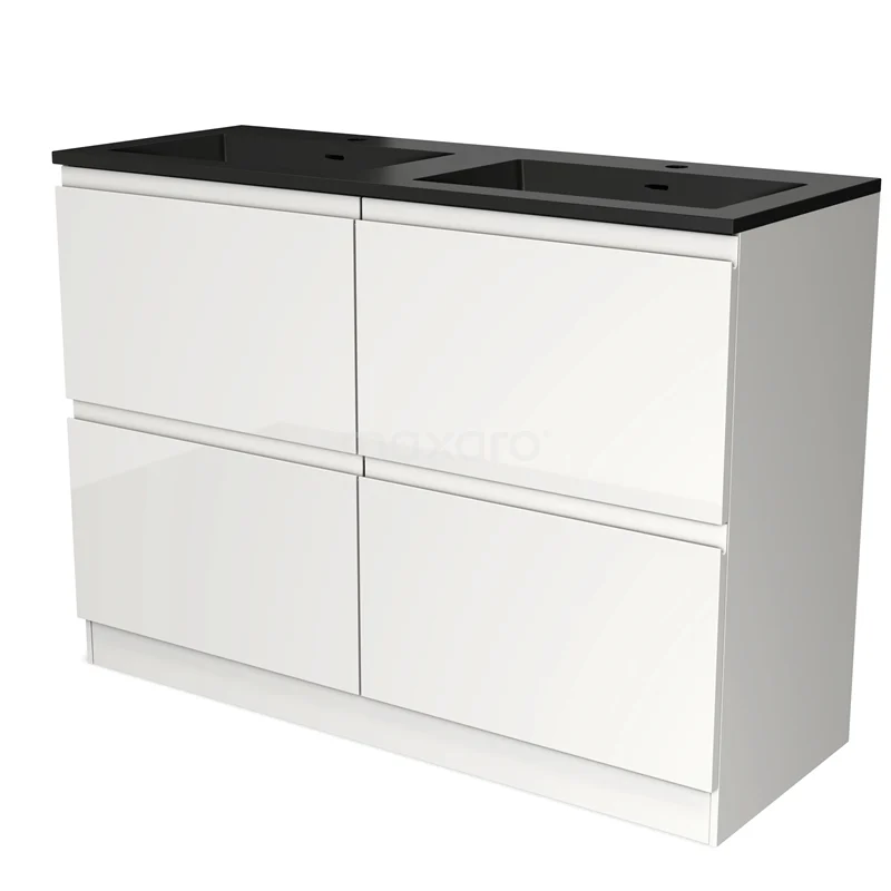 Modulo Bathroom furniture with sink | 120 cm High-gloss white Handle-less front Quartz 4 standing high drawers