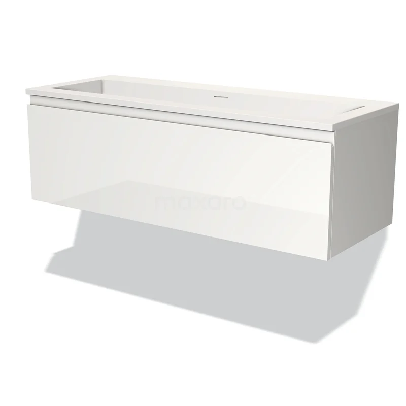 Modulo Bathroom furniture with sink | 120 cm High-gloss white Handle-less front Solid surface 1 drawer