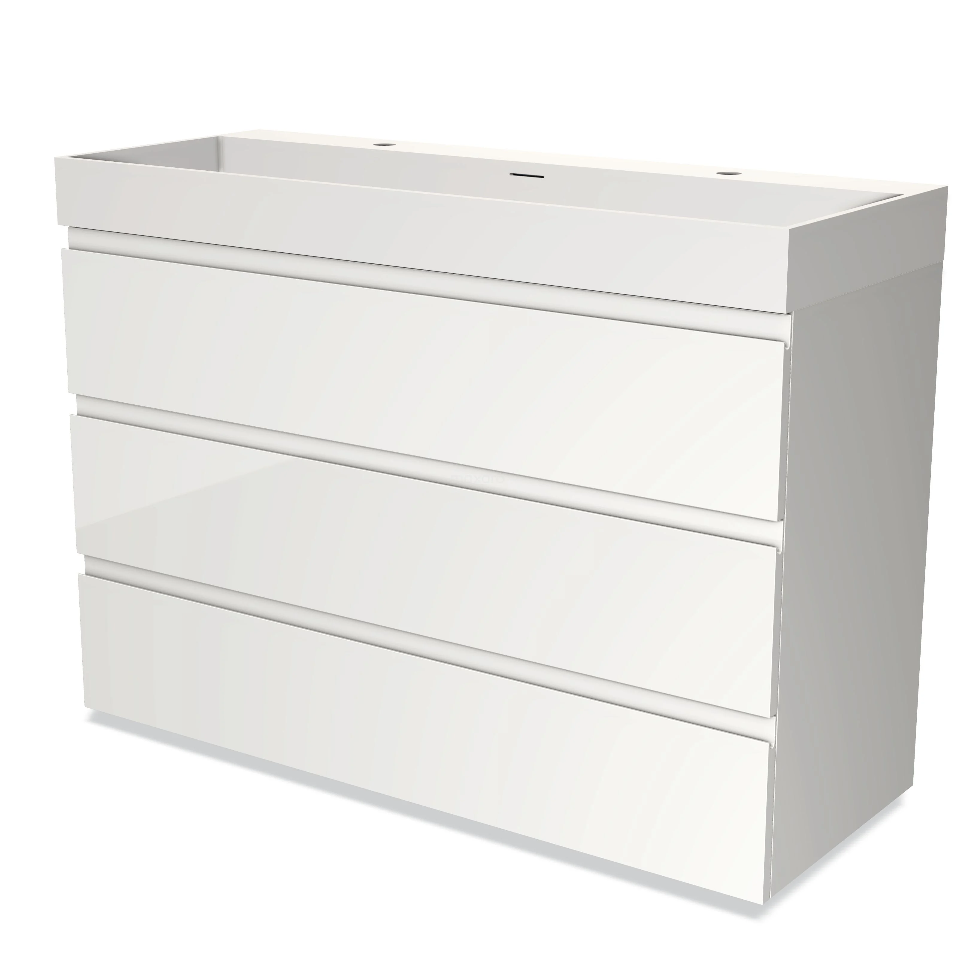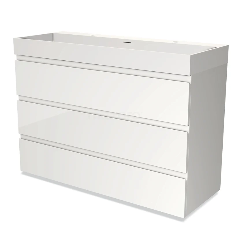 Modulo Bathroom furniture with sink | 120 cm High-gloss white Handle-less front Solid surface 3 drawers