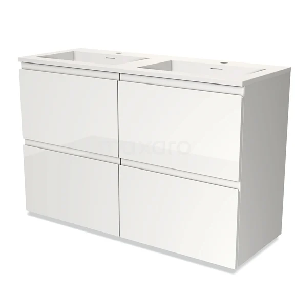 Modulo Bathroom furniture with sink | 120 cm High-gloss white Handle-less front Solid surface 4 high drawers