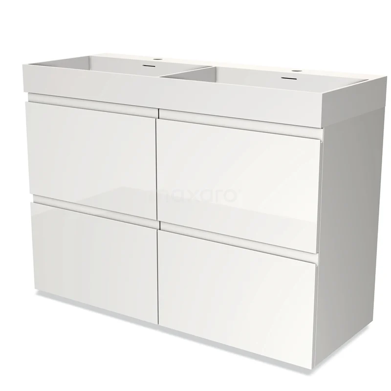 Modulo Bathroom furniture with sink | 120 cm High-gloss white Handle-less front Solid surface 4 high drawers