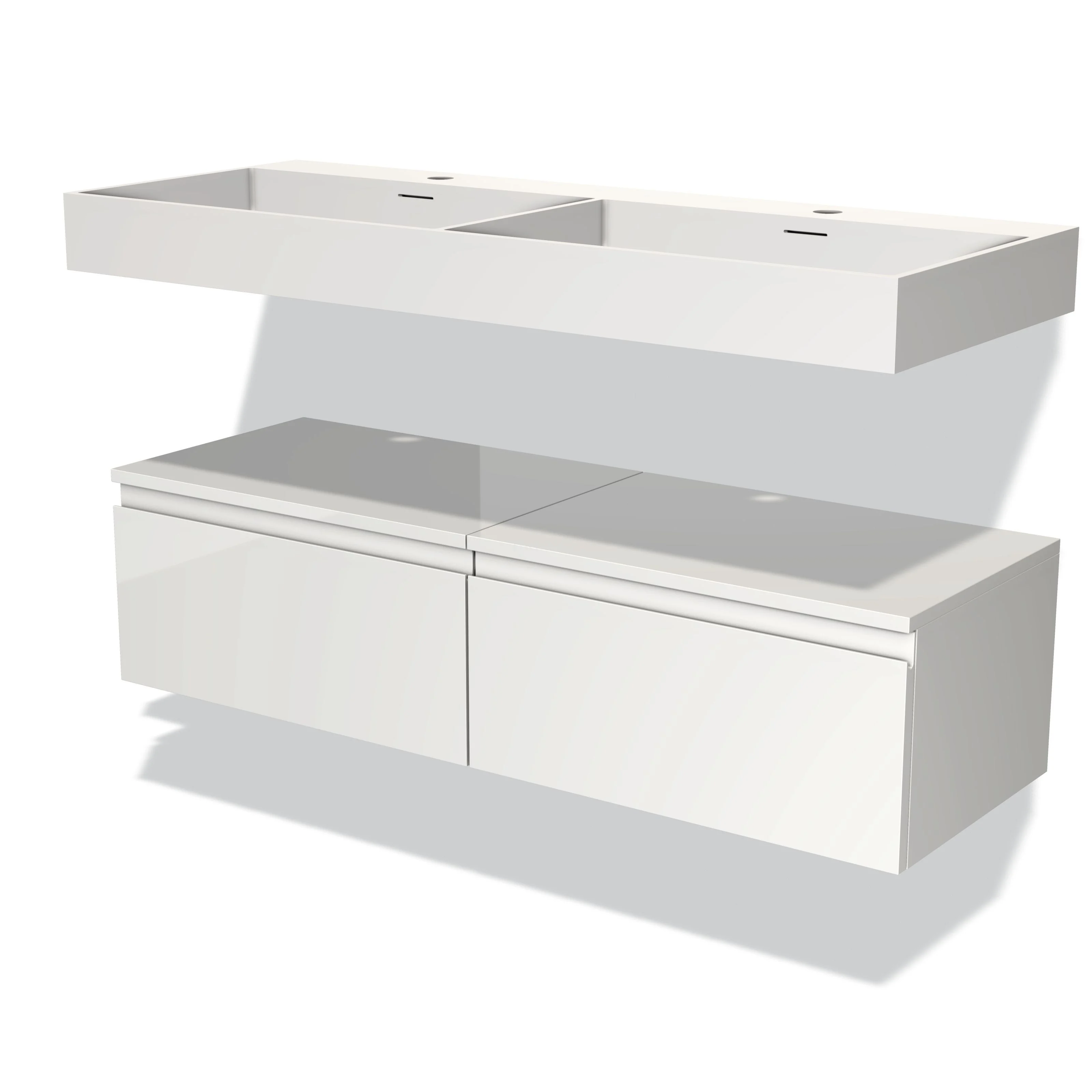 Modulo Bathroom furniture with sink | 120 cm High-gloss white Handle-less front Solid surface Low floating
