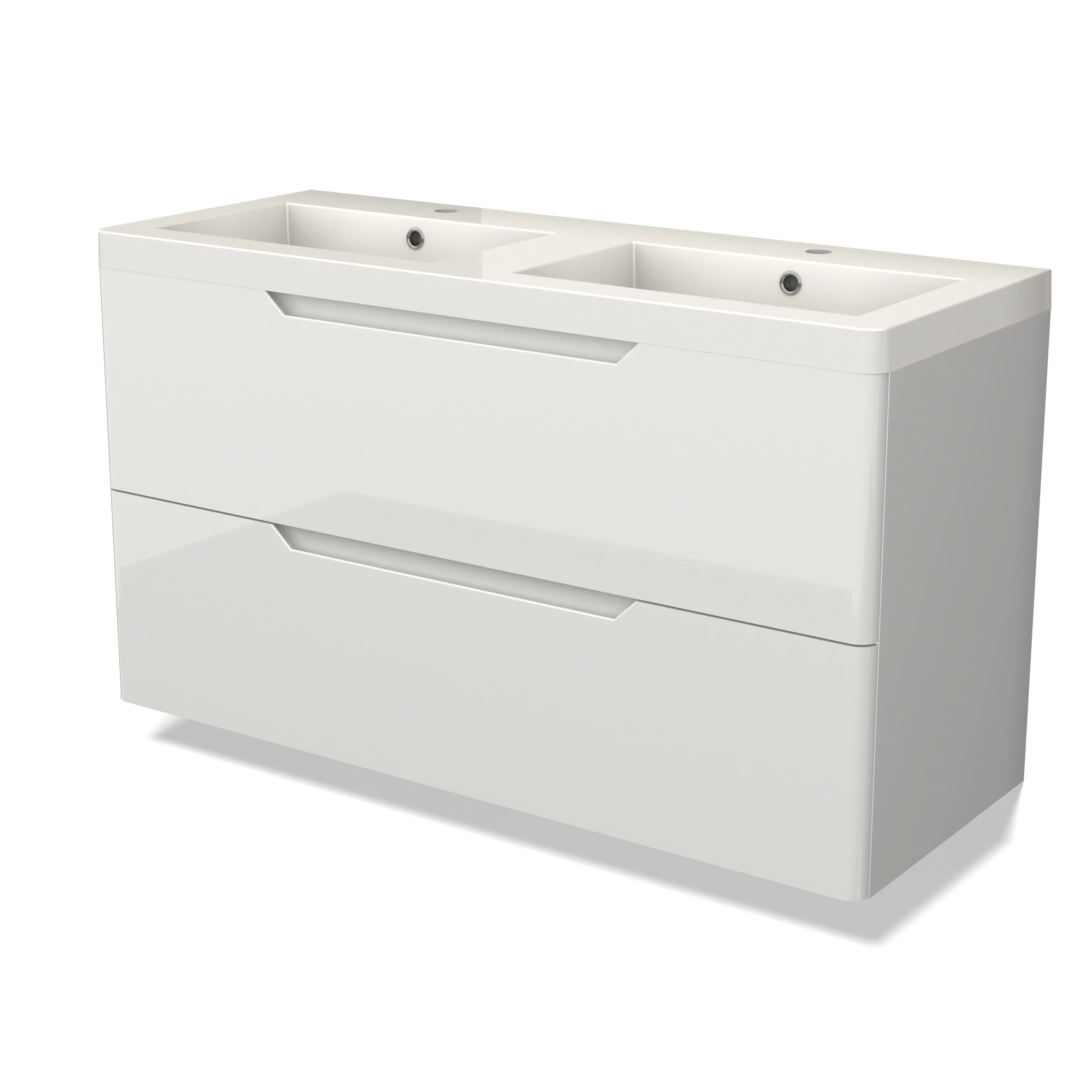 Modulo Bathroom furniture with sink | 120 cm High-gloss white Round front Mineral marble 2 Stacked drawers