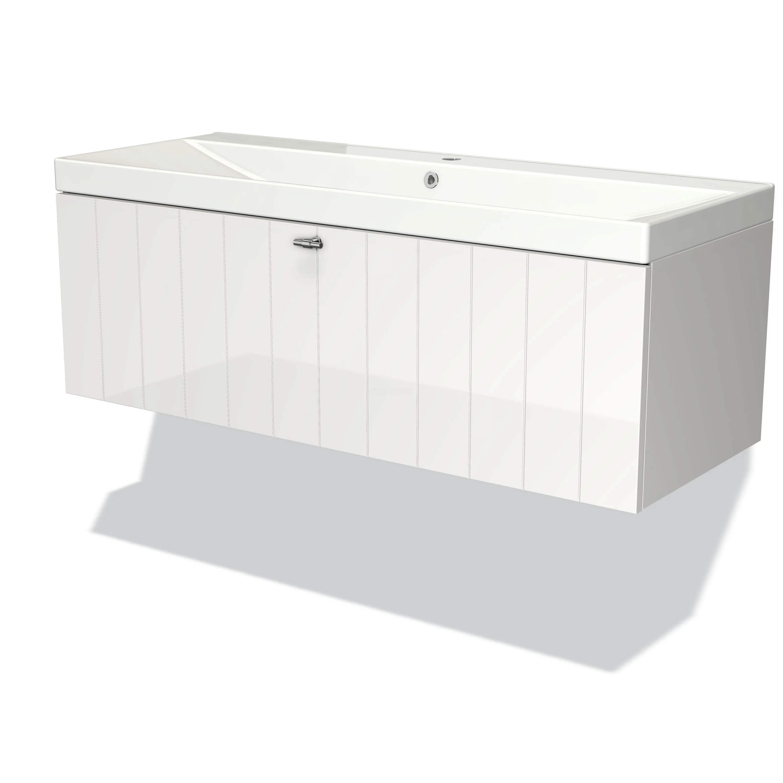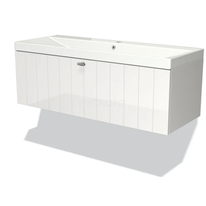 Modulo Bathroom furniture with sink | 120 cm High-gloss white Slat front Ceramic 1 drawer