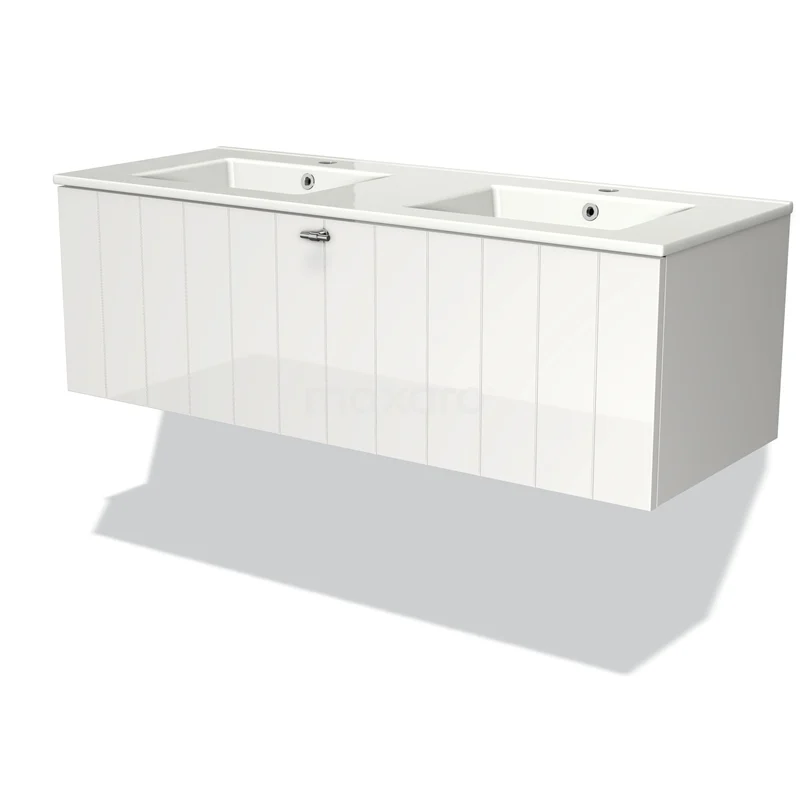 Modulo Bathroom furniture with sink | 120 cm High-gloss white Slat front Ceramic 1 drawer