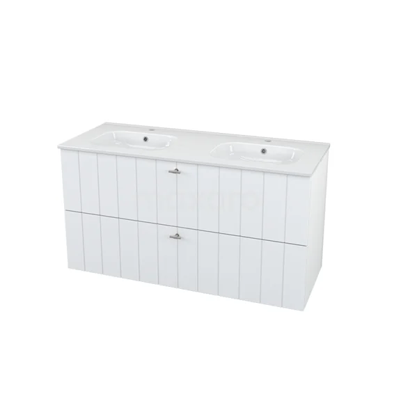 Modulo+ Bathroom furniture with sink | 120 cm High-gloss white Slat front Ceramic 2 Stacked drawers