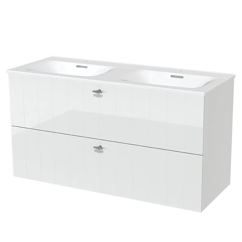 Modulo Bathroom furniture with sink | 120 cm High-gloss white Slat front Ceramic 2 Stacked drawers