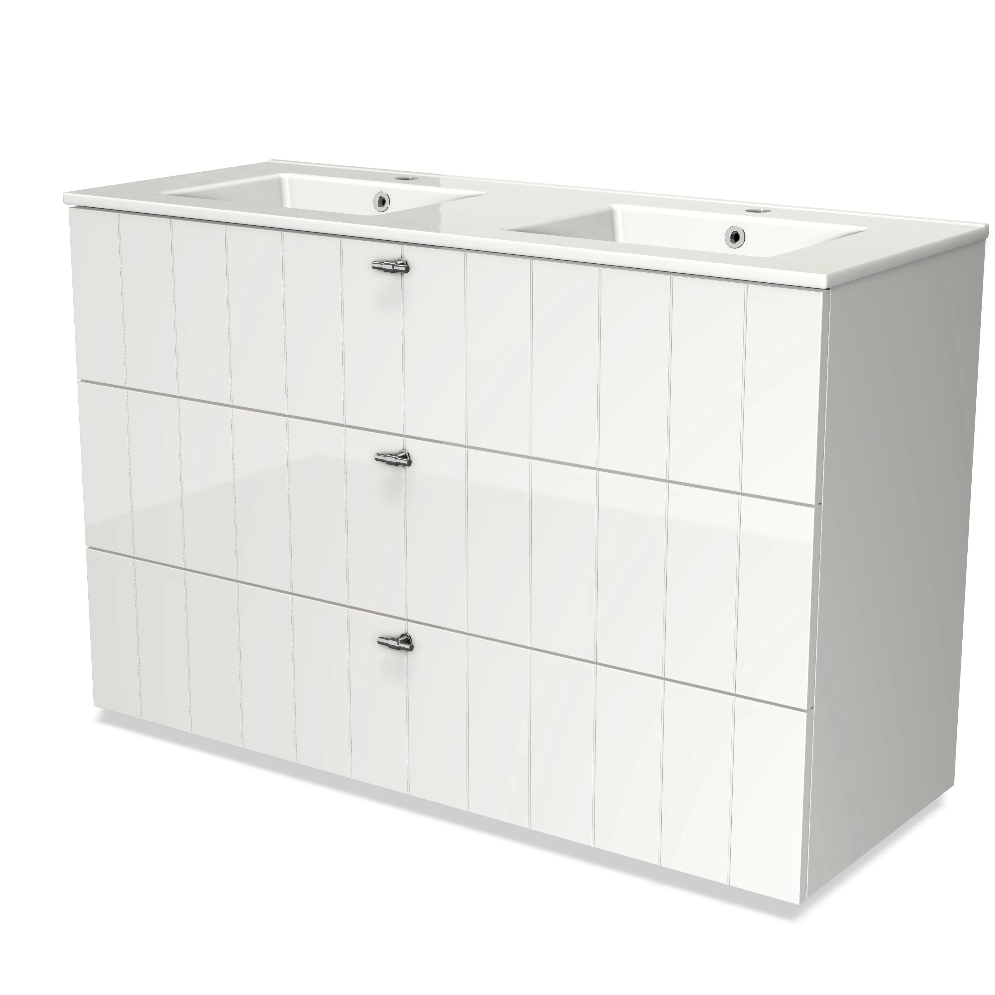 Modulo Bathroom furniture with sink | 120 cm High-gloss white Slat front Ceramic 3 drawers