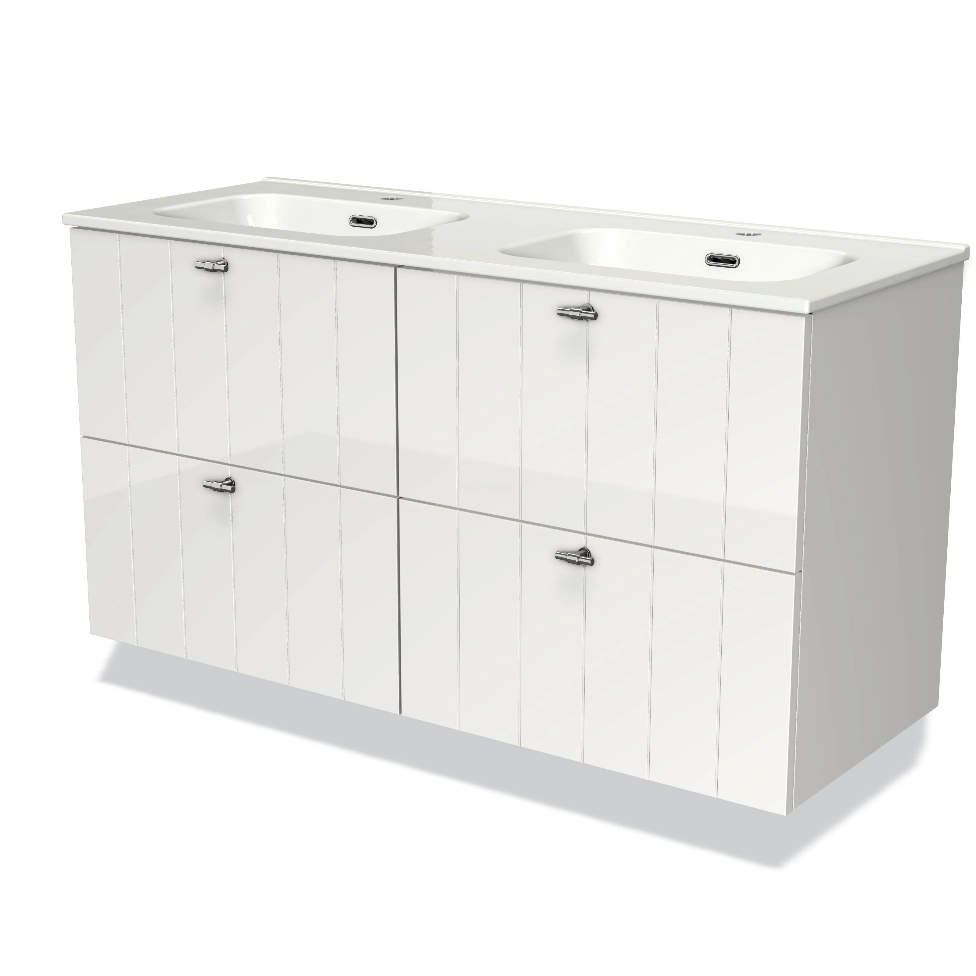 Modulo Bathroom furniture with sink | 120 cm High-gloss white Slat front Ceramic 4 drawers