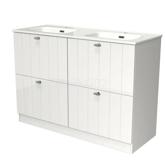 Modulo Bathroom furniture with sink | 120 cm High-gloss white Slat front Ceramic 4 standing high drawers