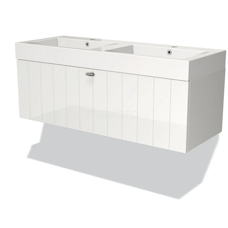 Modulo Bathroom furniture with sink | 120 cm High-gloss white Slat front Mineral marble 1 drawer