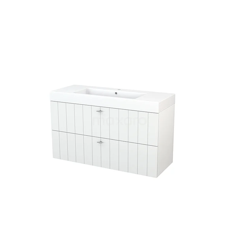 Modulo+ Bathroom furniture with sink | 120 cm High-gloss white Slat front Mineral marble 2 Stacked drawers