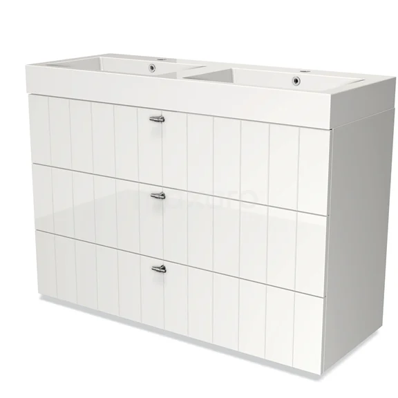 Modulo Bathroom furniture with sink | 120 cm High-gloss white Slat front Mineral marble 3 drawers
