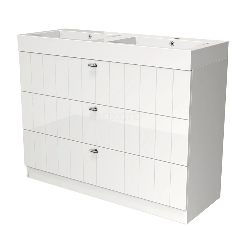 Modulo Bathroom furniture with sink | 120 cm High-gloss white Slat front Mineral marble 3 standing drawers
