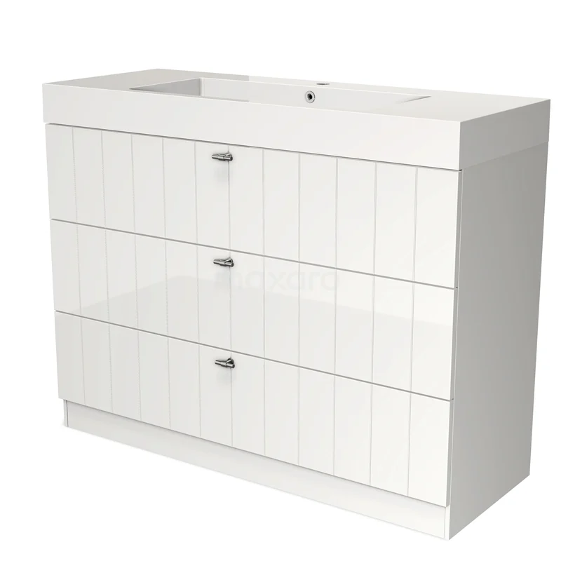 Modulo Bathroom furniture with sink | 120 cm High-gloss white Slat front Mineral marble 3 standing drawers