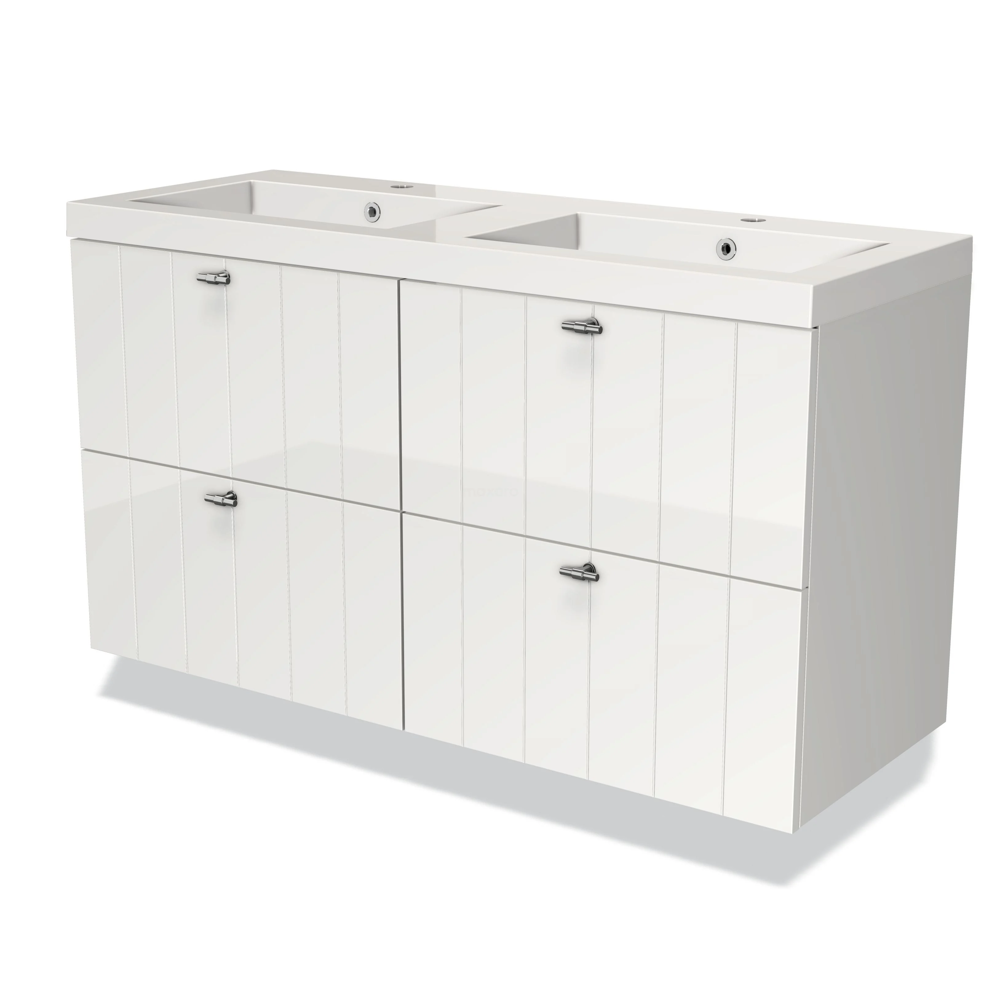 Modulo Bathroom furniture with sink | 120 cm High-gloss white Slat front Mineral marble 4 drawers