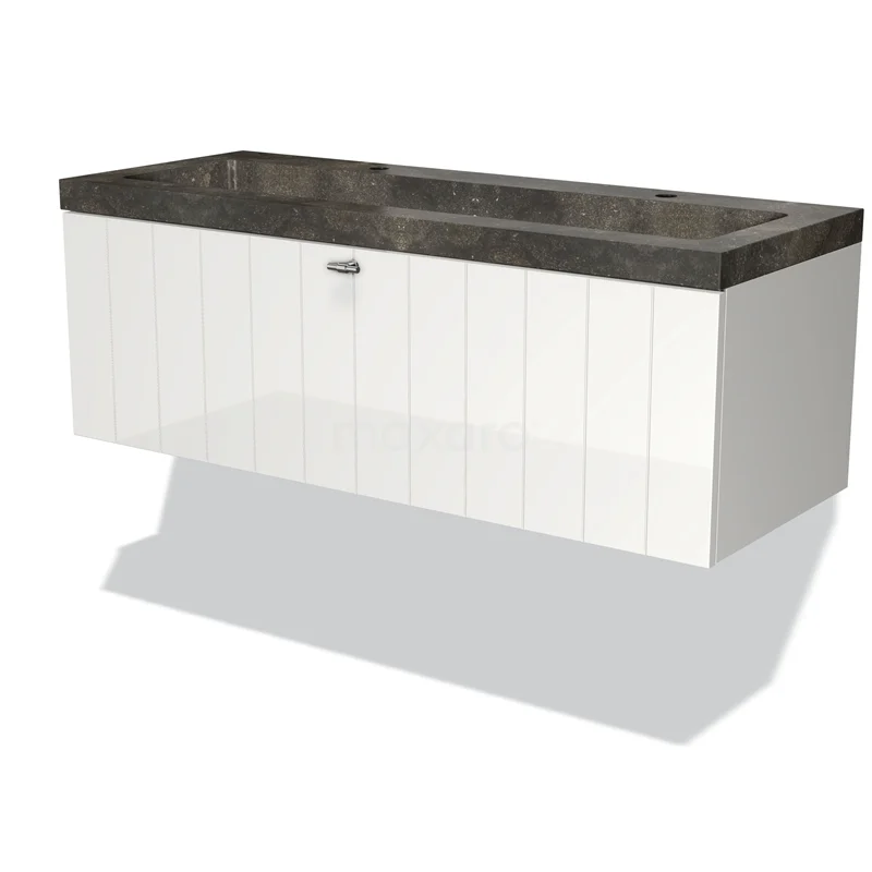 Modulo Bathroom furniture with sink | 120 cm High-gloss white Slat front Natural stone 1 drawer